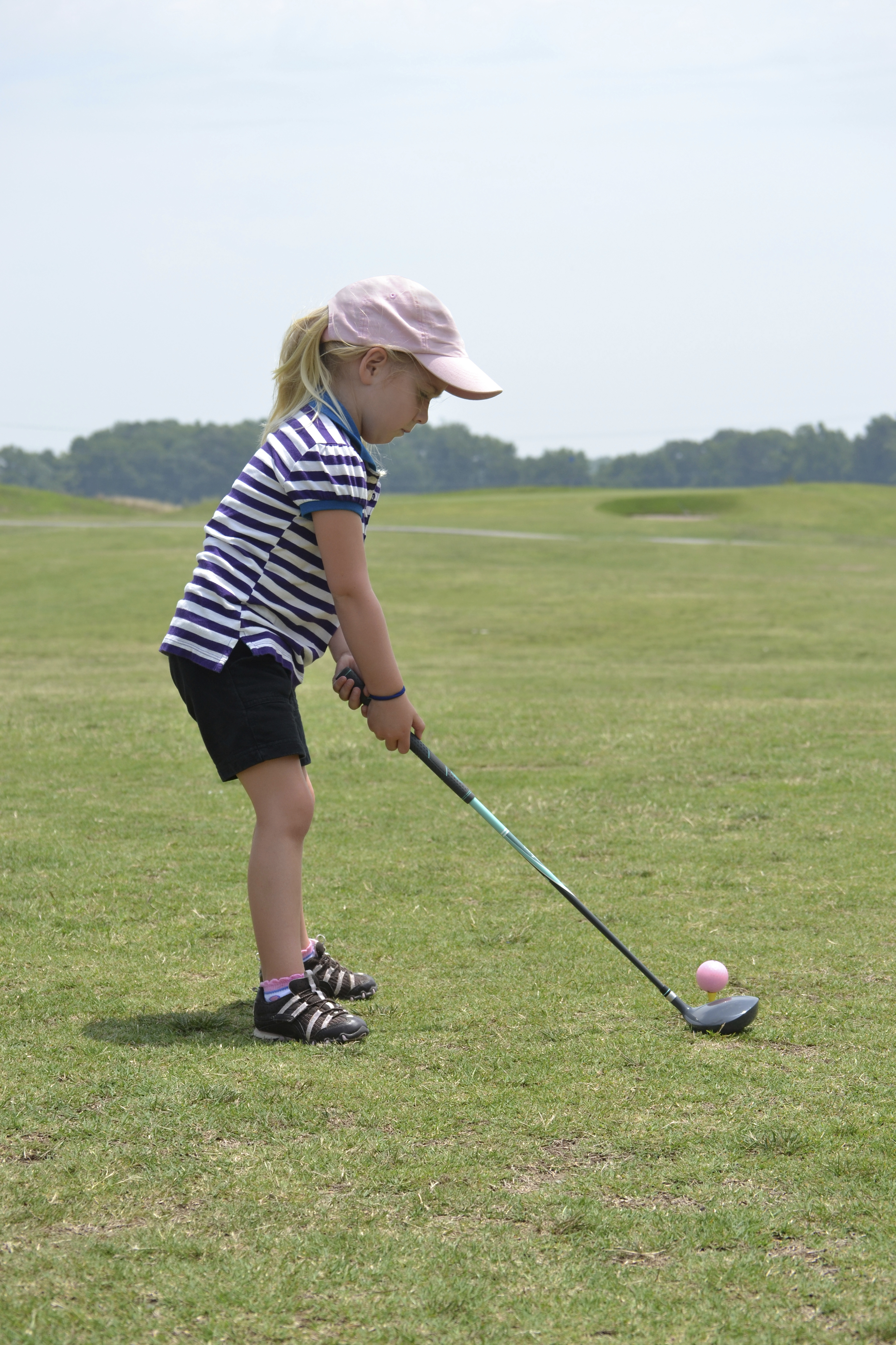 For starters, when beginning to play, there is no need for juniors to carry around a full set of 14 clubs in their bag. Kids should begin learning the game with a limited set of core clubs, including a driver, five wood, five iron, seven iron, pitching wedge and putter – a total of six clubs.